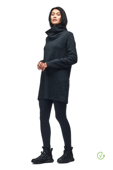 The Branches Indyeva Quilted Turtleneck Tunic combines cozy warmth, a stylish funnel collar, and a modern quilted pattern with functional pocketsโan elegant, versatile piece for cool-weather layering.